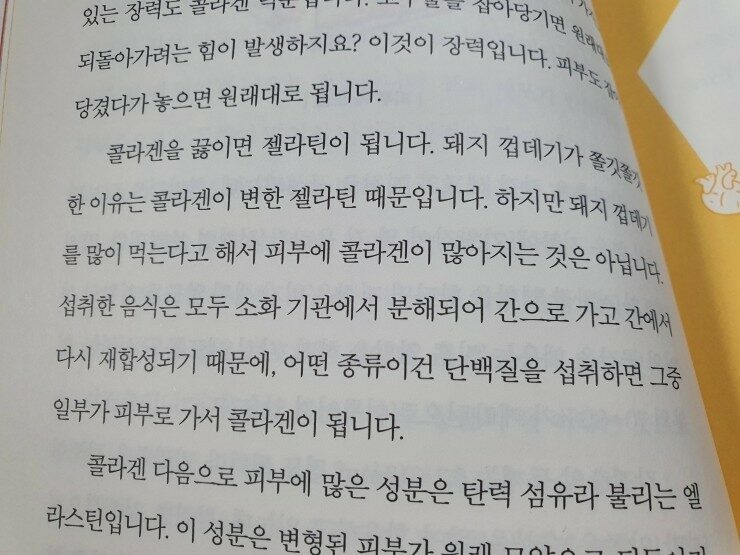 유사과학에서 많이 다루고 있는 콜라겐 이야기가 나와요.
