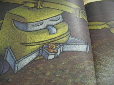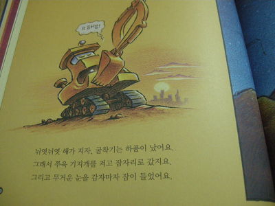 연기를 뿜으며 열심히 길을 닦던 불도저도 흙더미에 기대어 잠이 들어요