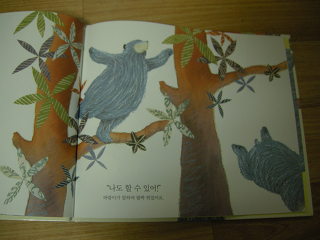 황금새는 서로 다른 모습에 '너는 곰이고 나는 새야, 새는 나무 위에서 살아'라고 하며 나무 위로 올라가요..