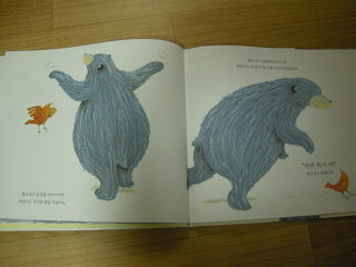 황금새가 날개짓을 하면 파랑이도 커다란 팔을 저었고 황금새가 팔짝팔짝 뛰면