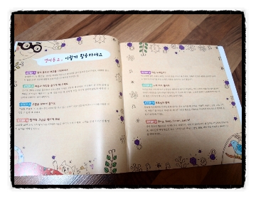 먼저 받아본 책의 첫이미지 너무 뿌듯했어요... 이제껏만나본 영어동요중 최고였어요... 겉표지도 너무 마음에 들구요.특히나 구성과 곡수가많은 노래 씨디... 제마음에 속 들어온 스텝업 영어동요속으로 go~go~~ 유치원 교육과정 5개 발달 영역에 찾춘 테마구성 언어생활 영역 머리가 좋아지고 말문이 트이는 영어동요 건강생활 영역몸과 마음이 튼튼해지는 영어동요 사회생활 영역넓은 마음 좋은 성격을 길러주는 영어동요 탐구생활 영역자연과 친구 되는 영어동요 표현생활 영역창의력과 상상력이 자라는 영어동요 발음이 좋아지고 영어가 쉬워지는 챈트 특별 부록 ●CD1 영어유치원 베스트 영어동요 40곡 ●CD2 알파벳 파닉스◎영어 구구단 첸트 10곡 파닉스 및 패턴 연습 108개 ●가이드북 우리말 가사,동요해설 씨디의 음악을 들으면서 자연스럽게 영어를 접하게되었어요... 무엇보다 효과적인 방법은 아이가 편하게 들을수 있는공간 차이동하면서...밥먹을때...잠들기전에...들려주었더니 효과적이더라구요... 밥먹을때는 그림을 보면서 노래에대한 내용을 질문해 보면서 가사의 내용을 짐작할수있게 하구요... 그림을 보며 노래 가사에 나오는 단어와 사물을 짝지어 그림을 통해 자연스럽게 영어 단어를 익히게 했답니다... 노래를 들으면서 노래에 얽힌 유래나 배경,가사의 뜻을 이야기해주며,정확히 번역된 내용을 읽어주기보다는 엄마가 이야기를 하듯 노래의 내용을 들려주었어요... 이제는 아이가 자유로운 분위기에서 흥얼거리고,흥미와 관심을 보여요... 역할극,손놀이,율동,그림 그리기,만들기 등 부모님 가이드에 제시된 다양한 활동이 많은 도움이 되었답니다... 우리집공주 동영상을 찍는걸 많이 방해하는편이라 많이 짧아요... 아이가 많이 좋아하고 잘따라해요....