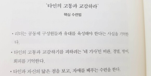 리더의 마음 챙김』 많은 리더쉽 관련 서적에서 이 책은 리더의 마음을 다스리는 것에 99% 집중하고 있다반박의 여지가 없는 당연한 말이다자신의 내면을 다스리지 못하는 리더가어떻게 조직의 구성원들을 이끌겠는가기존의 리더쉽 서적들이 조직을 구체적으로 이끄는 방법을 담았다면이 책은 오직 리더의 마음 한 가지만 집중하고 있다저자가 갈고 닦아온 수련의 지혜 중에서, “자신의 고통과 교감하라.”, “타인의 고통과 교감하라” 이 부분에서 가장 크게 공감하였다너무나 당연해서 잊고 살아가지만자신을 사랑하지 않으면타인도 사랑할 수 없다는 것이 오랜 지혜이다저자의 일곱 가지 코치는 버리거나 비우는 것이 아니다세상에 나 홀로 존재한다면 마음이 필요하지 않을 것이다세상에 나 외에 타인이 한 명만이라도 존재한다면우리는 공감할 마음이 필요로 할 것이다동양적인 선 사상을 서양의 수도자는 과연 어떻게 이야기할지 궁금하지 않은가?