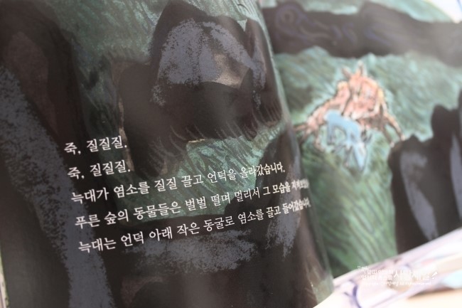 그 늑대는 배고품 중에 만난 염소를 질질 끌고 언덕으로 올라가 동굴속으로 들어간다.