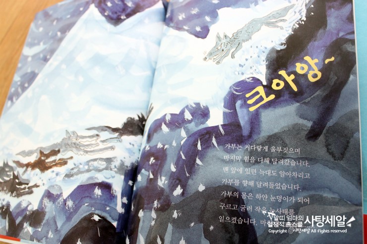 가부의 몸은 하얀 눈덩이가 되어 구르고 굴러 작은 눈사태를 일으켰습니다.