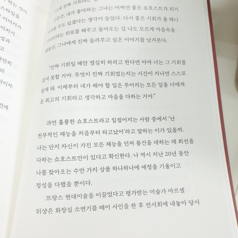 쇼핑의 세계 : 임세영 / 샘터 / 홈쇼핑 티브이에서 자주 만난 적 있는 쇼호스트 ‘임세영’ 님의 책, ‘쇼핑의 세계’. 물건과 쇼핑에 대한 자신만의 철학, 세계를 보여준 책이다. 책을 읽으며 의외의 반전은 패션계에 종사하는 사람이니 당연히 ‘맥시멀리스트’겠지 했는데, 가치를 생각하며 비움을 그 어느 누구보다 잘 실천하는 분이었다. 물건에 대한 진심과 진정성, 수십 번의 실패를 통한 실패하지 않는 방법을 배워가는 일 등도 인상 깊었다. 특히, 현재의 임세영이 있기까지의 부단히 노력한 과정들이 책을 읽는 내내 눈에 들어 왔다. 자신의 커리어를 위한 삶 전반에 대한 태도가 나와 같아 연신 반가웠다. 억대 연봉, 매출 신화 임세영의 성공신화는 그냥 이루어진 게 아님을 책속 한 구절을 통해 다 알 수 있었다. “진짜 기회일 때만 열심히 하려고 한다면 아마 너는 그 기회를 잡지 못 할거야. 무엇이 진짜 기회였는지는 시간이 지나면 스스로 알게 돼. 이제부터 네가 해야 할 일은 주어지는 모든 일을 너에게 온 최고의 기회라고 생각하고 마음을 다하는 거야.” (p 261)