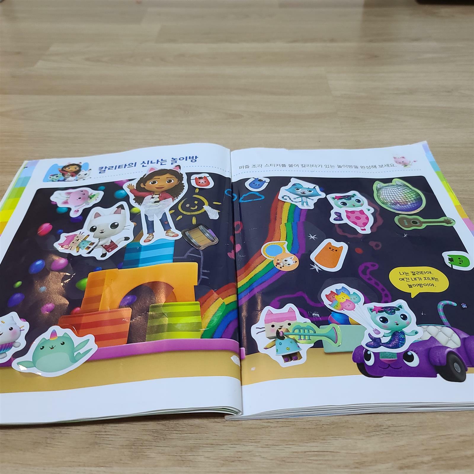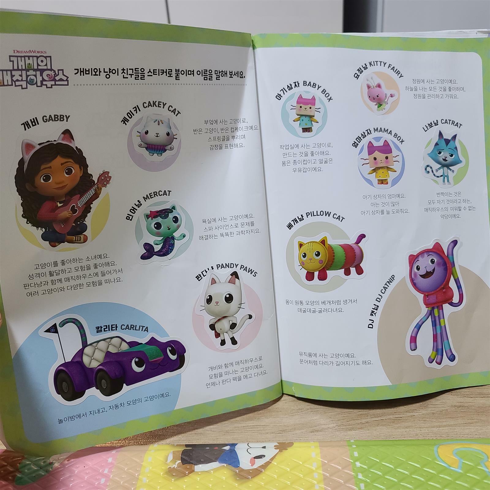 개비의 매직하우스 스티커북 개비와 냥이 스티커가 180개이상 아이가 정말정말 좋아해요 개비의 매직하우스 애니메이션을 좋아하는데 스티커북으로 나오니 아이랑 함께 해보기 좋네요. 아이가 코로나로 입원해서 병원에서 아주 유용하게 개비의매직하우스로 즐거운 시간을 보냈어요 매직하우스에는 마법과 환상으로 가득한 7개 테마의 방이 있어요. 개비와 판다냥은 그 방에 사는 사랑스러운 고양이 친구들 스티커 이쁜 방을 만들수있어요 『개비의 매직하우스 스티커북』은 고양이 친구들을 방 꾸미기,선긋기,퍼즐 등 재미있는 스티커 놀이 활동을 즐겨요 개비와 냥이들과 스티커를 붙이며 집중력과 키워요 스티커 180개 이상을 한 권에 다 담았습니다. 개비와 냥이들을 떼고 붙이며 조물조물 움직이는 동안 소근육이 발달하고 두뇌 활동이 활발해진답니다. 개비와 친구들이 선사하는 아기자기 재미있는 스티커 놀이는 집중력과 관찰력 향상에도 큰 도움이 되는 책입니다