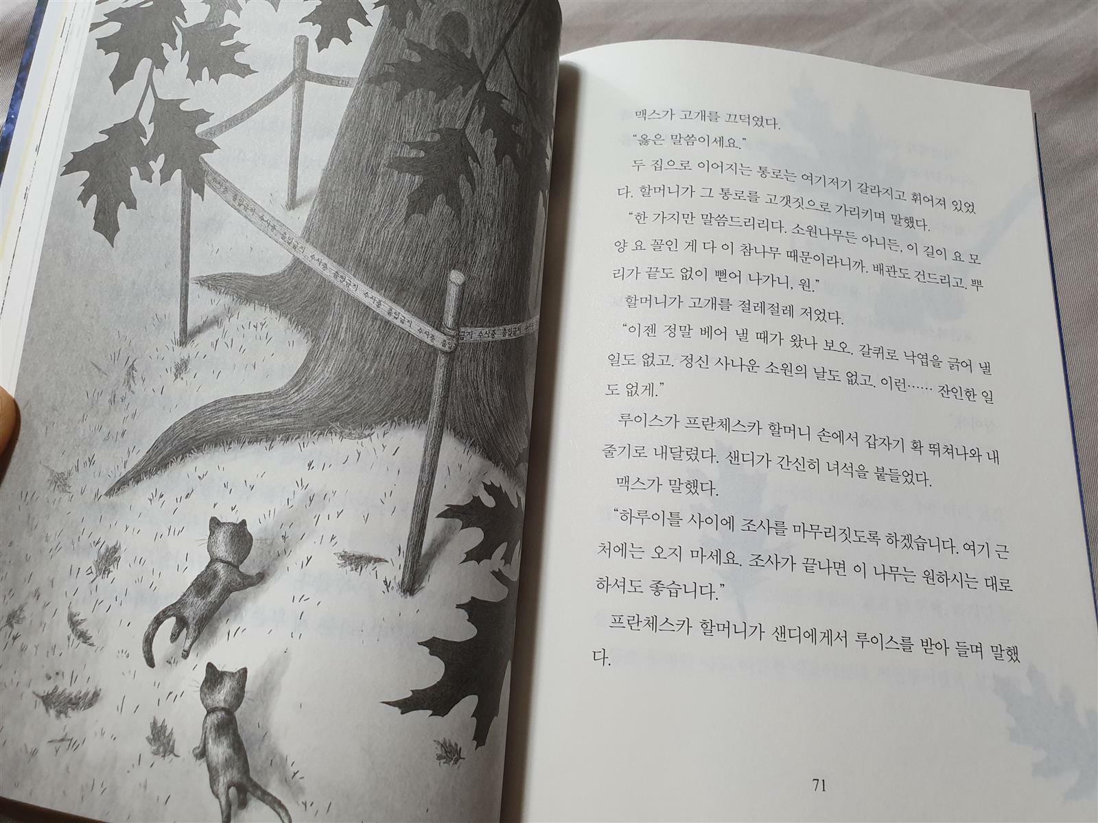 내 절친인 까마귀 ‘봉고’는 나더러 참견쟁이란다. 나는 낙관적인 반면, 봉고는 비관적인 성격이다. 우리는 매우 다르지만 딱 하나 공통점이 있다. 사람들에게 말 걸지 않기. 우리 스스로를 보호하기 위한 규칙이다. 그런데 나는 단순한 나무가 아니다. 나는 집이기도 하다. 하나의 공동체. 도시의 나무지만 많은 식구들이 내 가지와 뿌리 사이, 구멍 속을 집으로 삼아 살아간다.