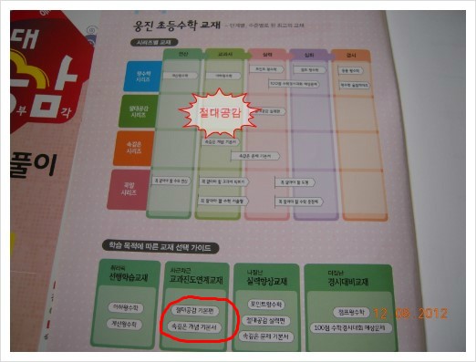 펼쳐보니 웅진의 초등수학교재 를 한 눈에 볼 수 있는 가이드가 나와 있어