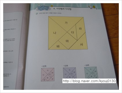 교재엔 4단원에 사용할 수 있는 여러 가지 모양을 만들 수 있는 도형판이 부록으로 있어 유용하게 사용할 수 있을 것 같아요.
