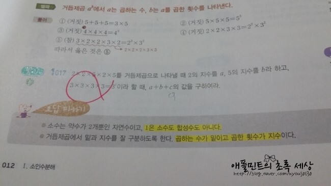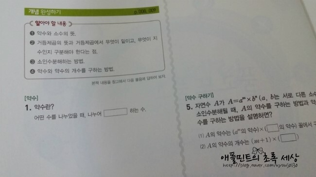 셀파해법수학 중 1-1의 본책은