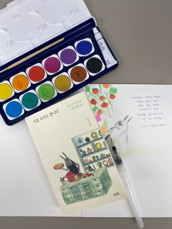 작가는 요리도 그림도 살기 위해서 하는 건데 그 두 가지는 조금 더 나 자신을 행복하게 만들어 준다고 했다. 가족들을 위해 때로는 친구을 위해 어쩌면 타인들을 위해서 요라를 한다고 한다.