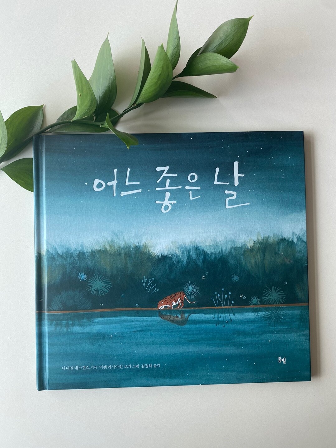 푸른 빛이 도는 표지호랑이는 별빛아래에서 평화롭게물을 마시고 뒤면에는 달 아래 악어 한마리...표지를 보고 있으면너무 평화로워 보인다. 호랑이에게 무슨 일이 있을까?어느 좋은 날...첫 장을 넘기니표지에서 느끼는 평화로움 보다는우리 안에 갇혀있는 호랑이주변에 사람들이 호랑이를 보고 있다.우리 밖에 빨간 스웨터를 입은 고양이도 보인다. ...고양이와 호랑이는 정말 친한 친구다둘은 언제나 함께 있다. 우리 안에 호랑이, 우리 밖에 고양이그리고 가끔 우리 안으로 들어오는 고양이고양이는 아무에게도 못 한 이야기를 호랑이에게 해고양이는 언제난 시간에 맞춰 호랑이를 만나하지만 호랑이는 시간을 맞출 필요가 없어.호랑이는 고양이에게고양이처럼 되고 싶다고 한다. 자유롭게 다니고 싶다고......고양이는 자유가 없다는 친구를생각하면 마음이 아파고양이는 호랑이에게 “어디 가야 지금보다 다 행복할 거 같아?”물어보니 호랑이는 “우리 집” 이라고 대답해.고양이는 친구를 위해집으로 보내 줄 수 있을까?????...우리에게는 때때로 좋은 친구와 약간의 행운이 필요하다. 힘들때 내 옆에서 이야기만 들어줘도 위로가 되고 힘이 되는 친구고양이와 호랑이의 우정처럼......약간의 행운이 있는 어느 좋은 날