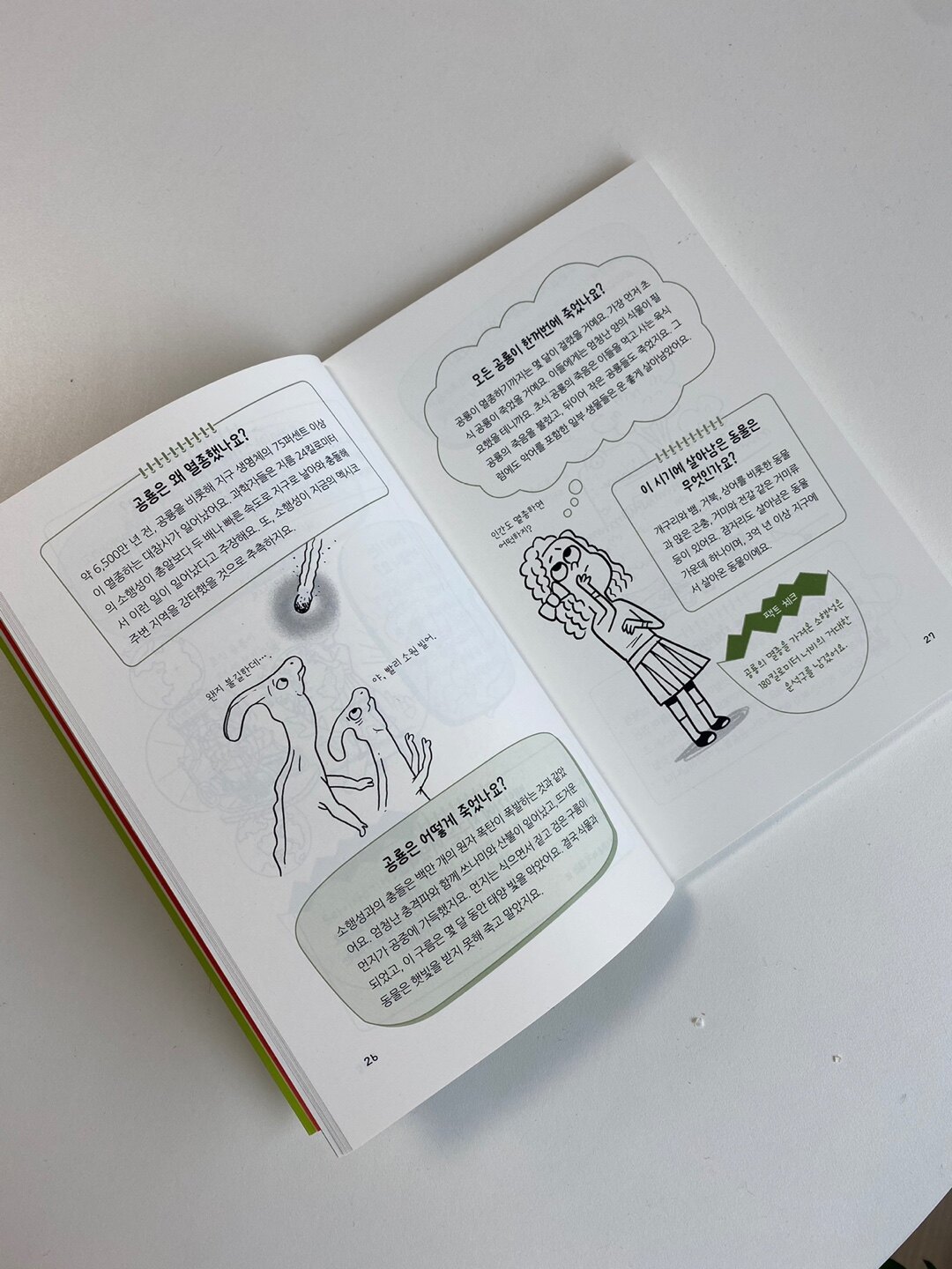 아이들이 좋아하는 공룡의 궁금증을 해결거대한 초식 공룡, 사나운 육식 공룡들의 사냥하는 방법 초식 공룡과 육식 공룡들의 생김새 공룡들은 왜 멸종했는지 아이들이 궁금한 모든것이 잘 나타나 있다..우리 아는 공룡들의 이야기와 엉뚱한 질문으로 공룡에 대해 몰랐던 사실을 알 수 있는 책. 아이들 시선해서 물어 볼 수 있는 질문이지만 그 질문으로 인해 공룡에 대해 좀 더 많은 걸 알 수 있다. ..공룡이란 말은 무슨 뜻 인가요?19세기에 공룡 화석이 처음 발굴되었을때, 과학자증은 이 거대한 뼈의 정체가 무엇인지 알 수 없었다. 그래서 무서운 도마뱀이란뜻 으로 공룡이라고 불렸다. ..가장 치명적인 발톱을 가진 육식 공룡은?메가랍토르의 발톱이 가장 치명적이다. 몸길이가 8미터 정도인 메가압토르는 낫 모양으로 된 발톱이 무려 35센티미터나 되었다. ..가장 똑똑한 공룡은?트로오돈의 지능이 가장 높았을 거라고 생각된다. 이 육식 공룡은 몸집에 비해 뇌의 크리아 가장 컸으면 지금의 새의 지능과 비슷했을 것이다. ..엉뚱한 질문으로 배우는 공룡 이야기아이들의 호기심과 상상력을 키워 줄 수 있어 재미있게 읽을 수 있으며 우리가 몰랐던 공룡들의 이야기를 알 수 있었다.