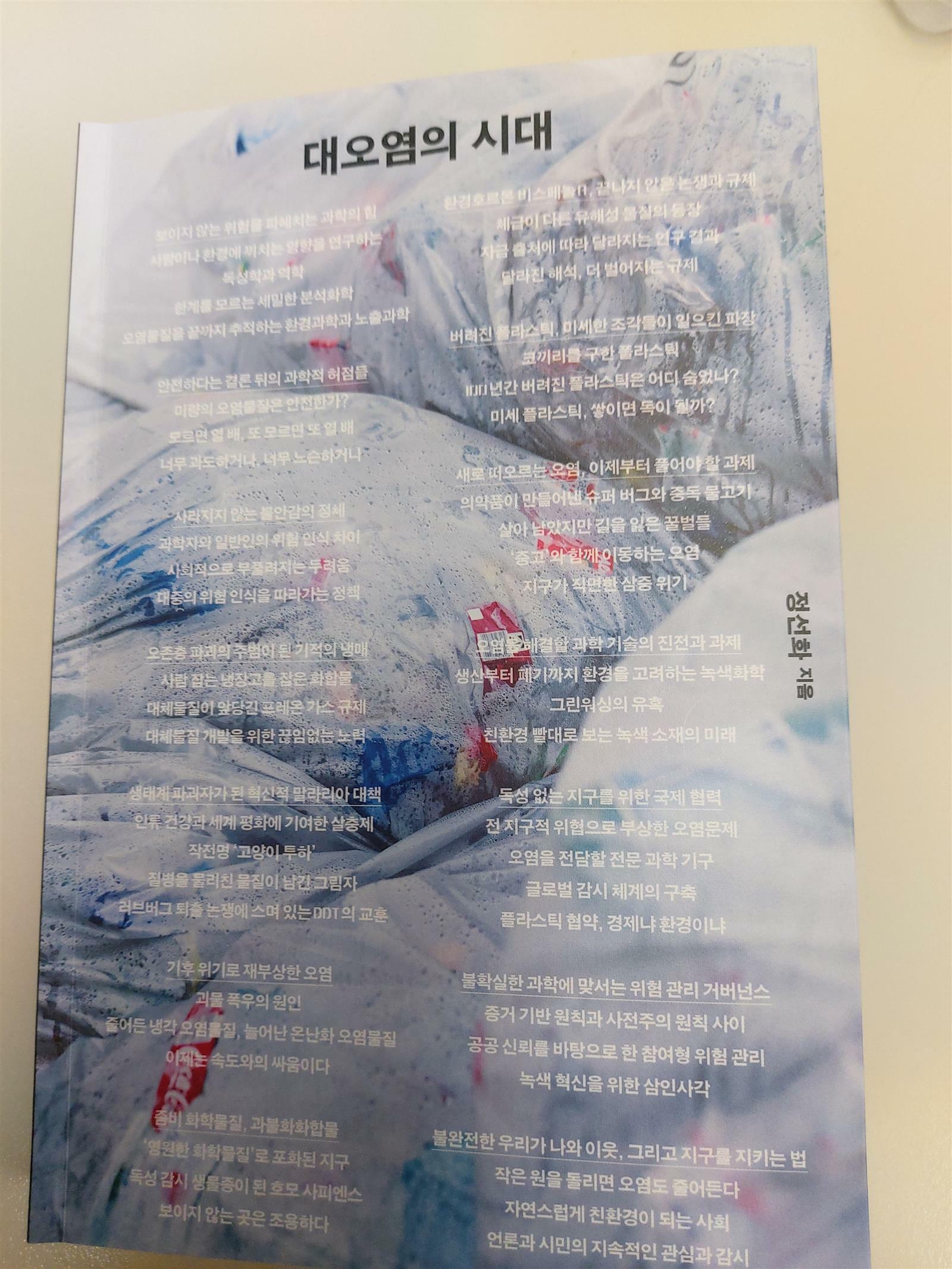 대오염의 시대 정선화 푸른숲 인간이 만든 물질들의 오염이 우리에게 가져다주는 해악에 대해서 과학적으로 접근함과 동시에 행정가로서 실력을 발휘해 온 저자의 특기를 통해서 세세히 조명된다. 인간의 편리를 위해서 발명한 물질이 오히려 장기간에 걸쳐오면서 즉 세대에 세대를 지나오면서 누적되어 상상치도 못한 결과를 가져오기도 함을 본다. 빈대잡으려다 초가 삼간 태운다라는 말처럼 해충을 구제하려다가 작물이나 기타 동물에게 더 나아가 사람에게까지 위해를 주는 일도 많이 있었다. 어떤 필요에 의해 의도적으로 창조해 낸 일이지만 의도치 않은 결과를 만들어냈다는 것은 그만큼 인간의 행위가 완전하지 못하며 어떤면에선 한계에 다다르고 있으며 여전히 성장이 많이 필요하다는 생각이 들곤 한다. 오염의 한 가운데 살면서도 너무도 쉽게 이를 망각하며 살고 있는 나는 환경에 대한 보고서와 이와 같은 책을 통해서 다시 한번 각성하게 된다. 여전히 오염되어 복구하기 조차 힘든 이 세상 속에서 꾸역꾸역 살고 있으며 사실 적나라하게 알면 알수록 더 조심스러워 지고 의심도 많아지며 편집증정돈 아니지만 날카로워 진다는 것도 알기 때문에 환경오염에 대한 글을 읽으면 조금의 두려움이 들곤하지만 알고 싶은 아니 알아야만 한다는 욕구가 훨씬 크다. 러브버그가 땅을 비옥하게 해준다지만 기후가 높아짐으로 인해서 혹은 천적이 감소해서 개체가 너무 많아지면 볼썽사나워지며 해충이 되어버릴 수 있지만 구제를 인위적으로 하기도 어렵다. 플라스틱이 바다 생태계를 힘들게 하고 상위포식자인 북극곰의 건강이 매우 나쁨을 안다고 해도 달리 손쓸 방법이 없다. 현상을 알고 분석한 뒤라도 이미 오염이 한껏 진행되어있는지라 아주 오랜기간이 복구를 위하여 필요해진다. 인간도 자연의 일부라고 했던가. 자연의 일부가 자연을 좀먹고 있는 것이 아이러니인데, 인간의 자연에 대한 무지로 인한 그동안의 행동들은 이제는 그만두었으면 좋겠다. 아울러 지금 나의 세대가 오염에 가장 일조하고 있는 세대 중 하나로 보이는데 산업혁명 이후로 내연기관을 움직이기 위한 화석연료의 대량 사용이 지금까지 이어졌고 설령 청정에너지로 바꿔가고 있다지만 아직 내연기관의 사용을 급격히 줄이기는 무리기에 앞으로라도 청정에너지사용의 증가를 기대하며 미래세대의 안전하게 살 자리에 문제가 생기지 않길 바라는 바이다. 이 글은 출판사로부터 책을 제공 받고 작성한 리뷰입니다