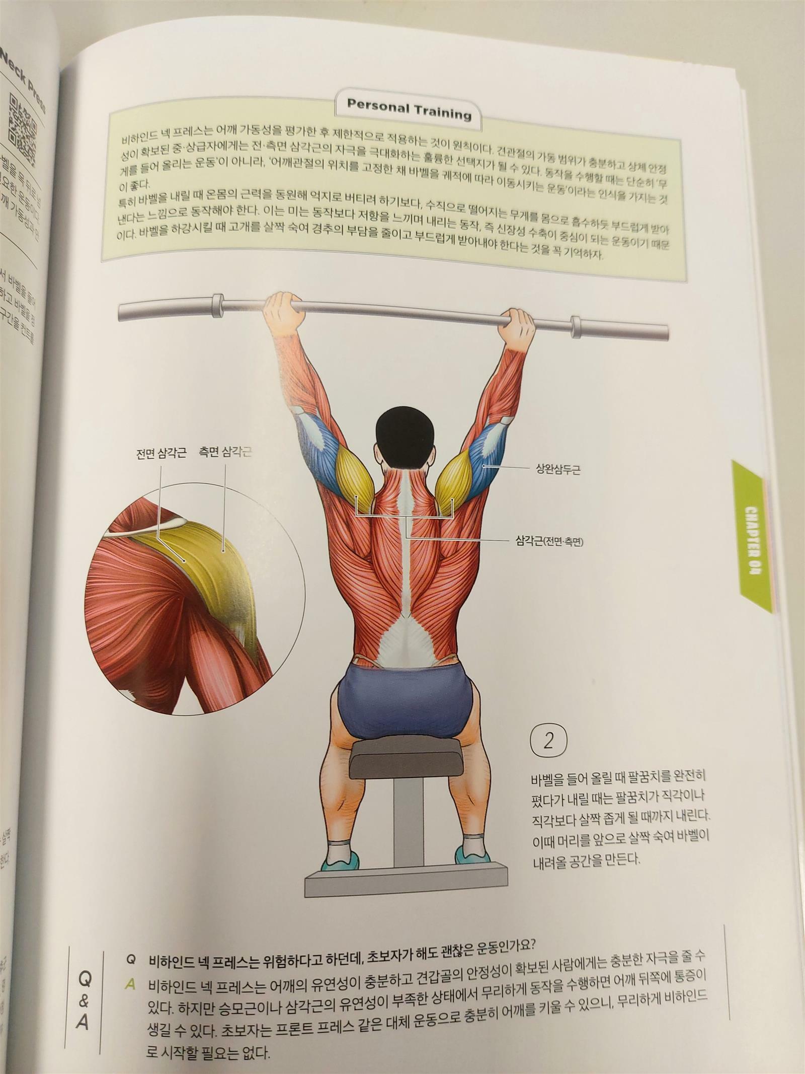 김명섭의 아나토미 헬스 교실 김명섭 싸이프레스 왕년에 이름깨나 날리셨던 보디빌더 김명섭님의 헬스지침서이다. 보디빌더 경력이 벌써 20년이 넘어 후진양성을 위해 힘쓰고 계신다. IFBB 선수들을 키우고 트레이닝해주며 개인 짐을 운영하고 이번에 나온 책의 내용처럼 운동처방학을 수료하고 동원된 근육에 대한 지식을 헬스선수를 위해 트레이너로서의 경험을 버무려 지침서를 내놓으셨다. 누구나 보디빌더가 되려고 하진 않을 것이지만 일반인으로서 건강하게 운동을 즐기고 벌크업을 하고 싶다면 여기에 나오는 식단과 스케줄대로 해봄직도 하다. 하루에 양을 적당히해서 6끼를 먹는 식단인데 해볼 수 있다면 도전해도 좋겠다. 어느 때부터인가 바프 즉 바디프로필을 찍는 사람이 많아져서 일정기간 식단조절과 운동을 병행하며 찍곤 한다. 인생에 한번쯤은 그런 사진을 남기고 싶다는 욕구가 사람들을 이끌어간다. 100일정도 바디프로필 미션을 위한 벌크업과 몸 만들기를 위한 식단과 PT를 받은 지인이 있는데 스튜디오비용과 헬스비용, 식단까지 500만원정도를 그 기간동안 소비했다고 했다. 적지 않은 비용인데 바프를 잘찍어서 아까워하는 눈치는 아니었다. 우리 세대의 문화는 아니지만 여튼 건강한 몸을 만드는 것에는 긍정적인 입장이다. 여러가지 운동이 부위별로 나와 있고 어떻게 자극을 줘야지 근성장에 더욱 효과적인지 알려주는 것이 좋았다. 개인적으로 뱃살이 줄지 않아 고민인데 크런치를 시행해보려고 한다. 책에서 나온대로 다리를 높은 곳에 걸치고 바닥에 등을 붙여 눕고 상체를 올리는 운동을 보니 빨리 가서 하고 싶다. 또 윗몸일으키기로 보이는 싯업과 손으로 머리위의 무언가를 잡고 다리를 올리는 레그 레이즈도 탁월한 운동으로 보인다. 지금까지는 간단히 푸쉬업과 친업정도와 고무밴드를 이용한 팔운동만을 즐겼다면 앞으로는 복근 운동을 통해서 뱃살을 줄이고 근육을 키워서 만족스러운 나의 변화된 신체를 보게 될 날이 기다려진다. 지인 중에서 대회를 나가는 친구들이 몇몇 있었다. 비시즌이라서 벌크업된 근육이 속 안에 감춰져서 한껏 커진 몸 때문에 지금은 볼품이 없지만 시즌때는 체지방을 줄이는 컷팅을 하고 식단을 하면서 몸 만들기에 여념이 없을 때가 언젠가 올터이다. 그 때는 멋진 몸으로 거듭나게 된다. 헬스크럽에 제대로 다닌 적이 사실은 없다. 벌크를 키우는 것 보다 맨몸운동을 좋아했기 때문이고 집에서 할 수 있는 닫힌 사슬운동(푸쉬업, 스쿼트)을 주로 한다. 그리고 주로 즐겨하는 운동은 러닝이었다. 러닝을 매일 했고 푸쉬업과 스쿼트도 즐기고 있었다. 하지만 책을 참고하여 레그레이즈와 크런치를 다시 종목에 집어 넣어서 몸 만들기를 해볼 요량이다. 올바른 해부학적 지식이 곁든 모든 운동의 결과는 좋지 않을 수 없다. 그 점이 관련일에 종사하는 이들이 다시 대학으로 발걸음을 하여 제대로 된 지식을 배우고 학위를 따는 이유중 하나이기도 할터이다. 앞으로도 건강한 몸을 만드는 일에 해부학지식이 기본적으로 적극적으로 쓰이길 바란다. 이 글은 출판사로부터 책을 제공 받고 작성한 리뷰입니다