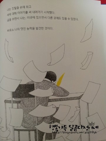 그 상상을 글로 쓰면서 비로서 능력을 발견한 어른이 된 아이.