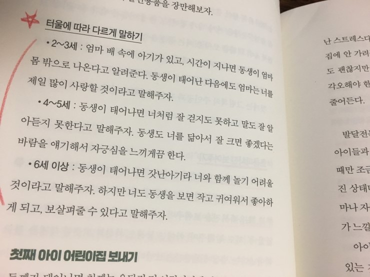 나이 터울에 따라 둘째의 소식을 전하는 방법이나 표현을 다르게 알려주네요..