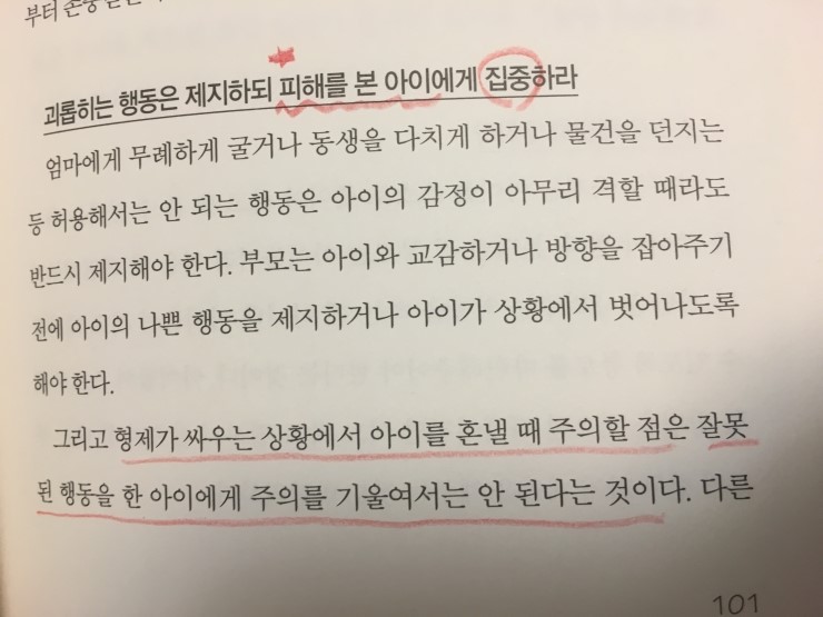 잘못된 행동을 한 아이에게 주의를 기울이지 말고, 피해를 본 아이에게 집중해야 한다는 것.