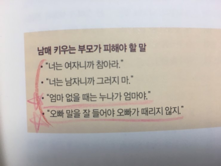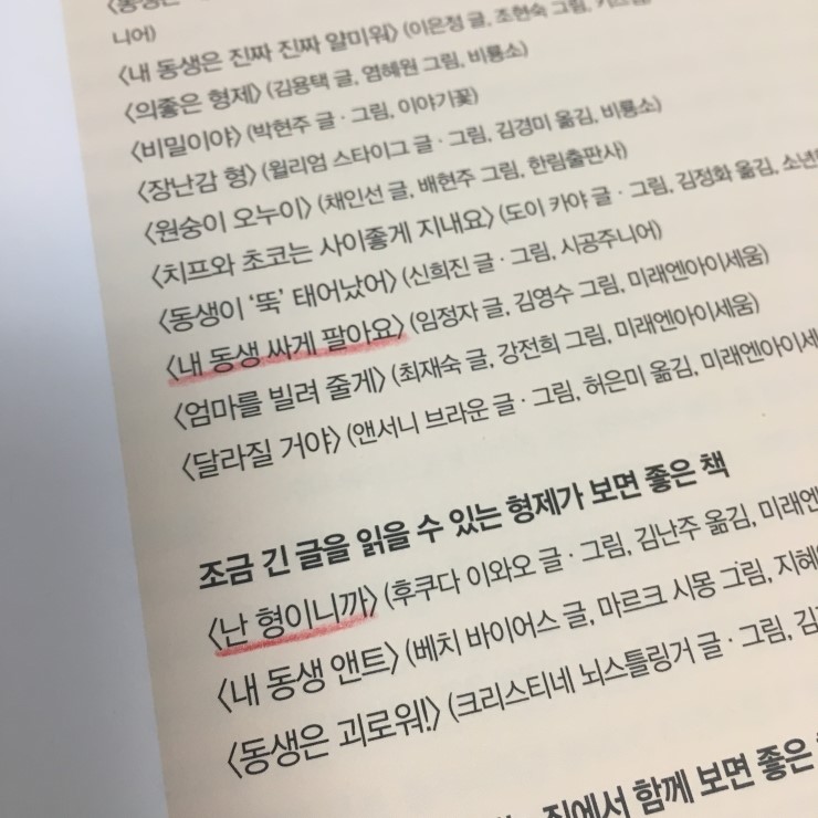 책 으로라도 형제. 자매간의 갈등이나 이해관계에 대한 이야기를 많이 들려주려 했었거든요.