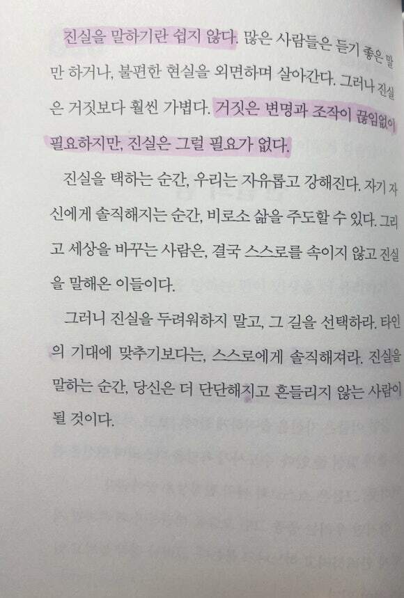 『어떤 권력도 거짓만으로 오래 유지될 수 없다. 진정한 영향력은 자신을 속이지 않고, 진실을 말하는데서 나온다.