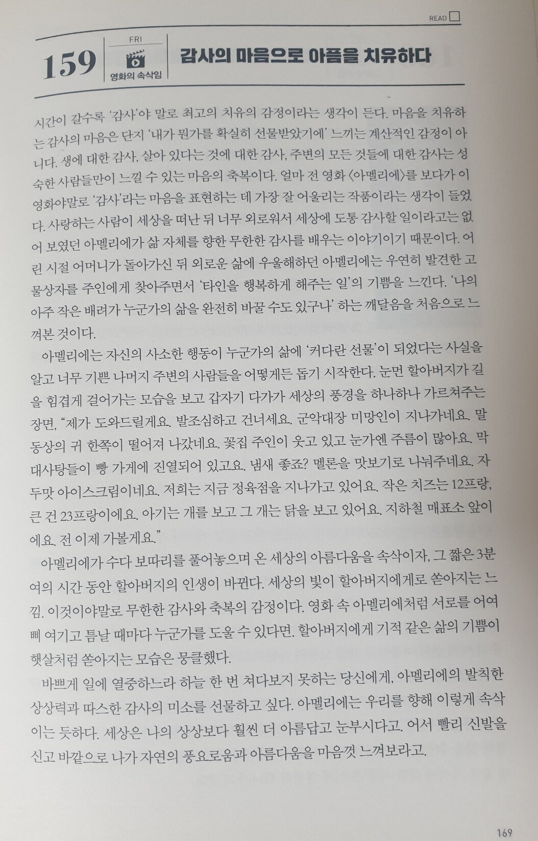 그는 책을 통해 자신의 세 가지가 바뀌었다고 설명했다. 첫 번째는 책을 읽으면서 꿈을 갖게 된 점, 두 번째는 책을 읽음으로써 삶의방식이 바뀐 점이다. 그리고 세 번째는 가족의 중요성을 알게 된 점이다. 진정 소중한 변화이자 실존적 차원의 변화였다. 이런 변화 덕분에 그는 직장인의 사춘기를 잘 넘길 수 있었다고 한다. - P145