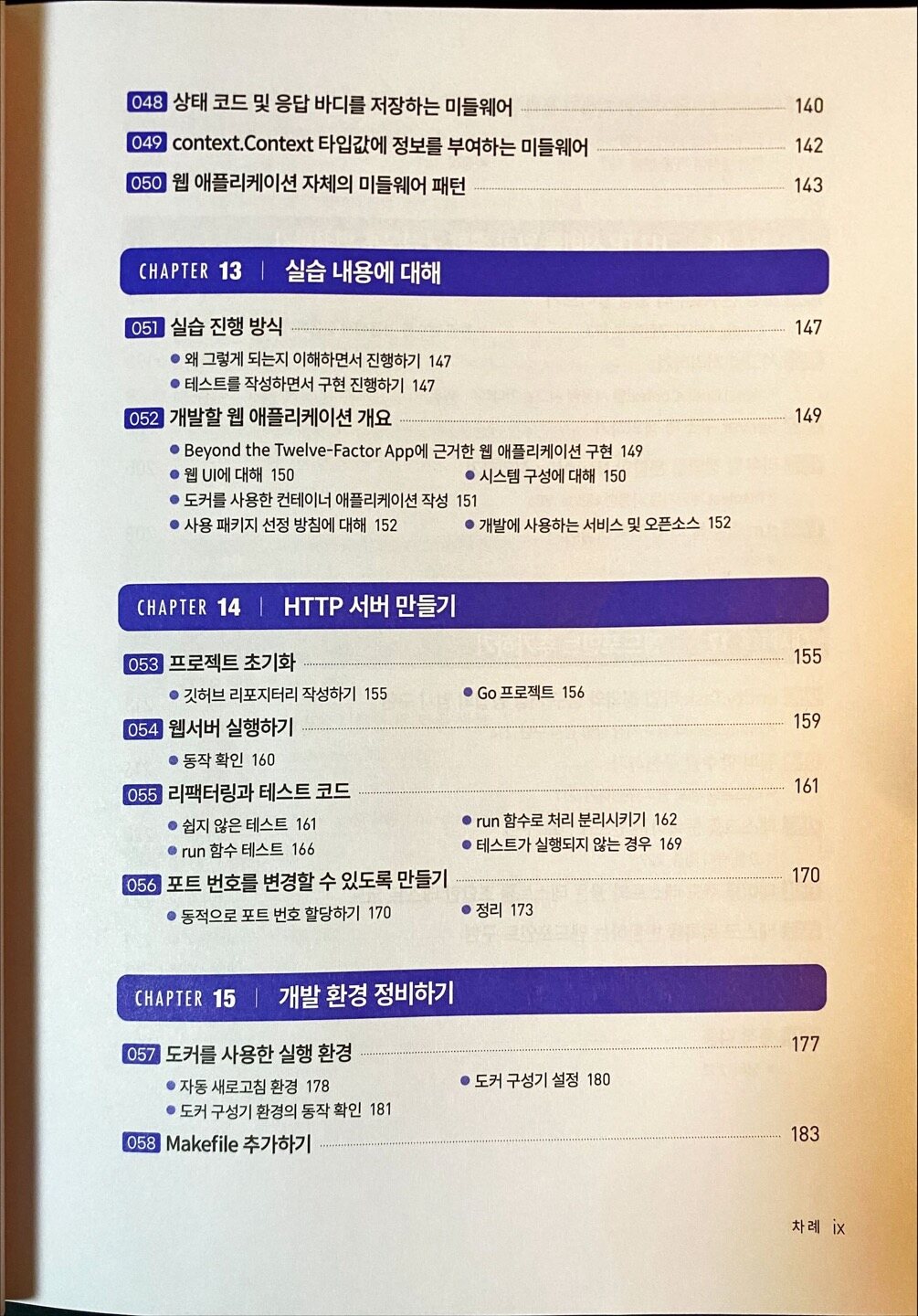 결론부터 말하면 이 책은 Go 언어를 알려주는 책은 아니다. 당연하겠지만, Go 언어에 대한 내용에 대한 기본 지식을 알아야지만 위 책을 쉽게 읽을 수 있을 것이다. 다만 Go 언어로 웹 개발을 하기 위한 기본적인 문법이나, 배경 지식은 설명해주겠지만, 만약에 Go 라는 언어가 처음이라면 제이펍이나 다른 출판사에서 나온 Go 문법책을 참고해야할 것이다.