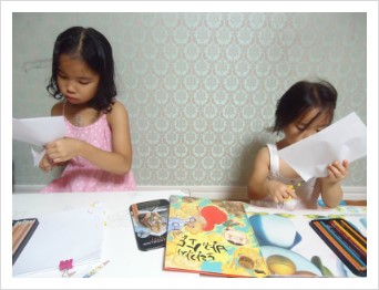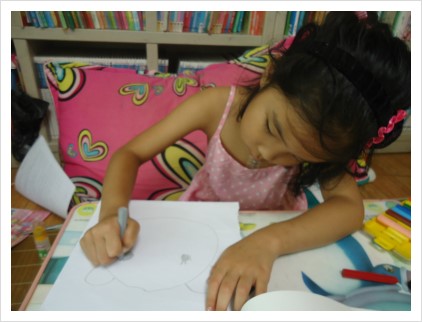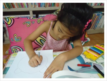 아이는 직접 작고 귀여운 생쥐를 그리며 사자와 생쥐 역할놀이를 해보았습니다.