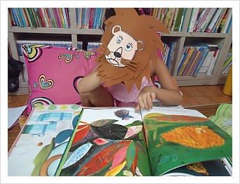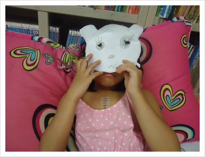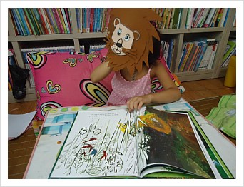 동화구연 연습을 하면서 만든 사자 가면을 활용해 아이랑 역할놀이를 해보았습니다.