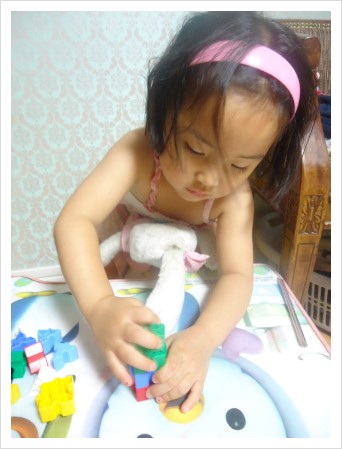 몰펀을 가지고 블럭을 끼우고 맞추면서 높다, 낮다의 개념을 알고 비교해 보았어요.