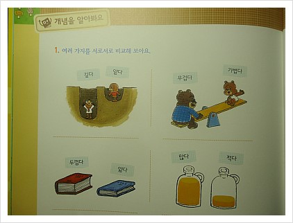 실제로 초등학교 1학년 언니인 수학책에 비교라는 내용으로 문제를 풀고있더라구요.