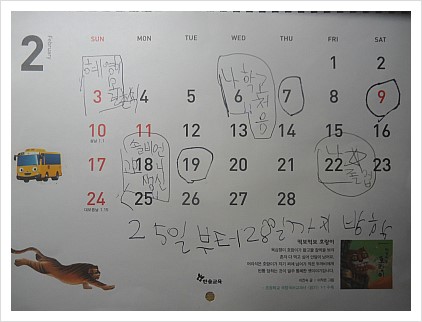 요번엔 아이들이 올해 초 직접 행사가 있는 날에 동그라미 해주었답니다.