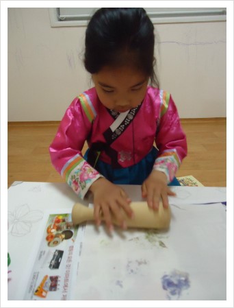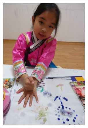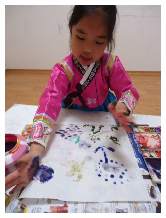 이번엔 물감으로 손바닥으로 찍어보기도 하고...