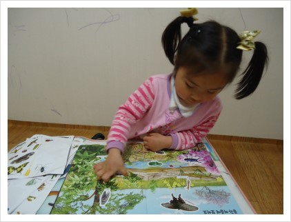 곤충이나 작은 동물들이 사는 곳에 따라 스티커를 붙여주어요..