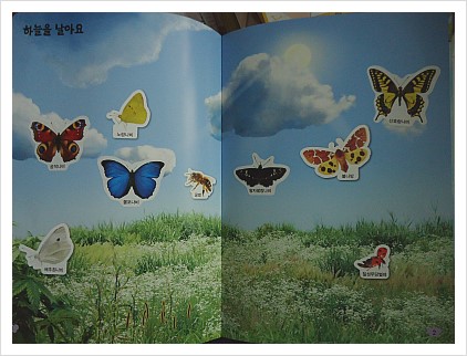 스티커를 붙이면서 하늘을 나는 곤충, 나무에 사는 곤충과 작은 동물들,,,