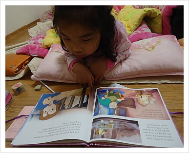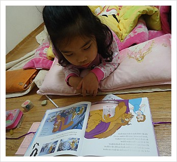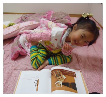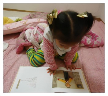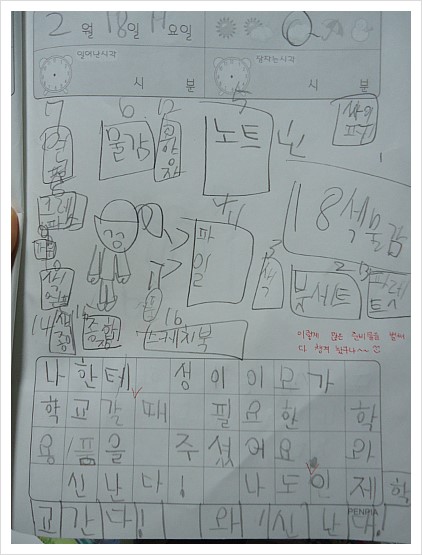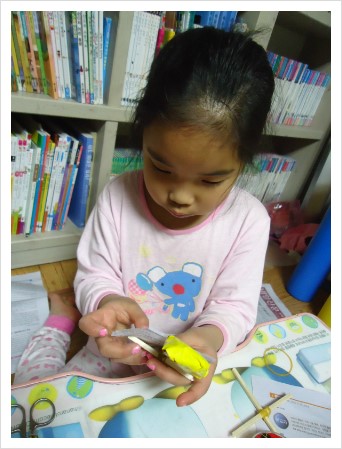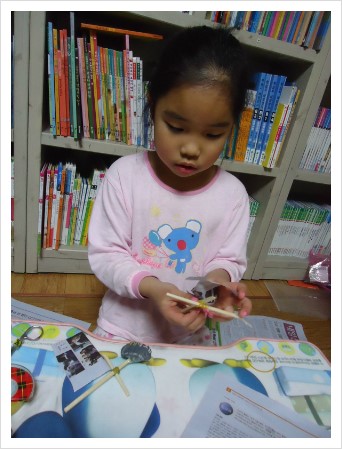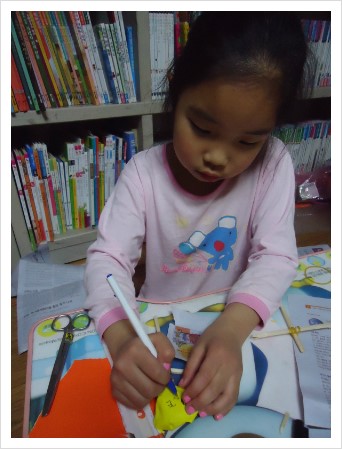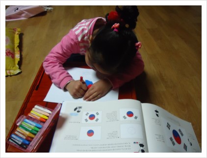 책을 보자마자 태극기를 그리기 시작하는 딸.