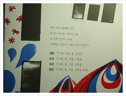 태극무늬의 뜻과 태극무늬에 둘러싸인 사괘에 대해 자세히 알 수 있었습니다.