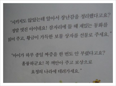 아이에게 벌을 준답시고, 벌에 대한 따끔한 충고보다는 협박하고, 윽박지르는 부모들의 말이 제 가슴에 뜨끔하게 다가왔습니다.