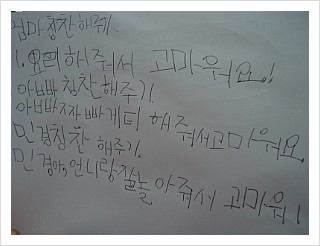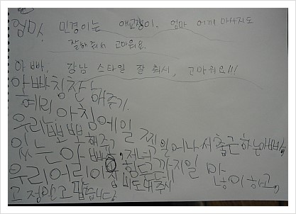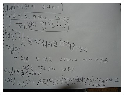7살 우리딸이 엄마, 아빠, 동생 칭찬해주었네요.