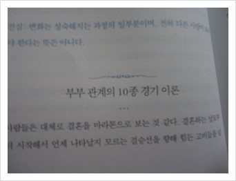 이 책은 결혼을 결승선을 앞에 두고 마라톤으로 표현하기 보다는 10종 경기에 표현하였다.