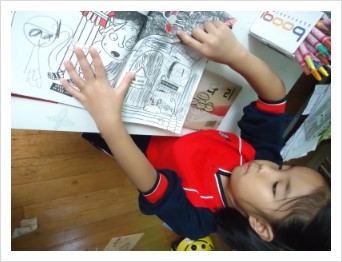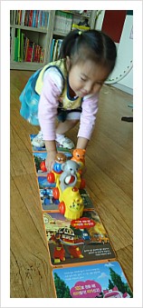 우리아이들의 눈으로 본 오른쪽 부터 노란색부터 하마, 기린, 사람, 오리, 얼룩말, 강아지, 사자,