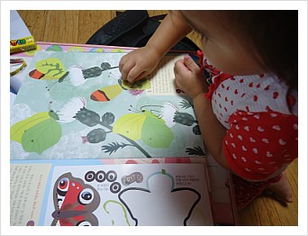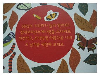 우리 아이 색연필로 나비 날개도 예쁘게 알록달록 색칠도 해보고,56장의 다양한 스티커로 애벌레도 붙여주고,