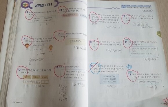 만약 맞은 개수가 8개 미만이라면 이 교재 난이도가 아이에게 맞지 않은 것 같으니,