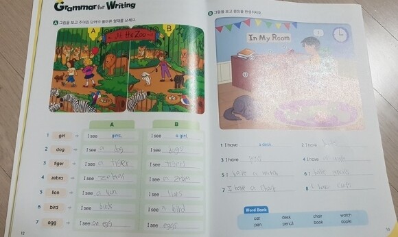교재를 잡고 20~30분만에 몇장을 후다닥 풀 정도로 좋아해요.