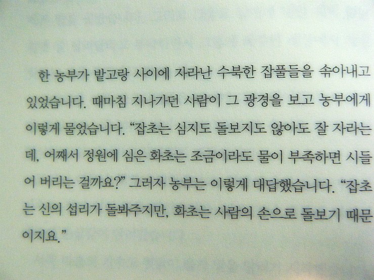 "우화는 인간의 내면을 비추는 지혜의 거울이다." 어릴 때 부터 책을 좋아 해서 동화책 같은거는 아마 거의 다 봣었다. 다만 그시절의 동화책과 이번[서양우화집]은 같은 이야기엿지만 다가오는 것이 달랐다. 그때는 단순히 이야기를 읽었었고, 게다가 어린아이를 대상으로 나오는 동화집은 교휸이나 스토리가 있는것을 따져서 한국정서에 맞게 토착화시켜서 이야기가 변형된 경우가 많았다면. [서양우화집]의 예순편의 우화들은 원본을 보는 느낌이엿다. 직접적으로 얘기하기도 하고 뜻을 아무 함축한 이야기들도 있었다. 읽고 그리고 생각할수 있는 이야기. 정의(샤를 페로) 물을 마시려는 어린 양에게 시비를 건 늑대. 어린양의 합리적인 항변은 늑대의 힘의 근거에 의해 사라지고 잡혀 먹힌다는 이야기. 지극히도 무서운 이야기 라고 생각 됩니다. 현대 사회에서도 힘있는 자들이 없는 자들을 핍박 하면서 불합리를 저지르는 모습이 생각나 이 이야기도 어릴때 본 것인데. 그때는 깨닫지 못햇지만 지금은 알게 되어 버린 현대의 늑대와 지금의 양인 우리의 모습. 섭리(장 프랑수아 르나르) 인간 중심적인 사고로 인해 자연을 훼손하고 무분별한 유전자 조작이 자행되고 있는 지금. 인간의 섭리는 자연에 통용되지 않는 다는 것을 알려주는 이야기. 양치기와 늑대(코트홀트 에프라임 레싱) 나이든 늑대가 양치기들에게 양을 주면 양을 습격하지 않겟다는 식의 약탈적인 거래에 양치기들의 거절. 그에 대한 늑대의 주제모르는 한마디 "모두가 다 지독한 놈들뿐인 세상이야." 자신만 생각 하고 남은 전혀 고려 하지 않는 사람들이 많은데.... 꼭 한번 읽혀 보고 감상을 들어 보고 싶다는 생각 이 든다. 당신은 이 늑대가 아니냐고.... 수록된 우화 들은 짧게는 한페이지 길어도 3장 이내로 끝나는 짧은 이야기가 반복되서 시간 날때 마다 곁에두고 조금씩 읽어도 좋아 보이며 ㅋ 기승전결이 없는 얘기도 있지만. 그 나름대로의 깊은 의미가 있고 그 의미가 직접 또는 숨겨져 있다는 대놓고 드러내고 있어 ㅁ낳은 생각을 하기 쉽게 되있어 생각 해보면서 읽기 좋았다.. ㅇㅅㅇ 지식이 아닌 지혜를 주는책. 해당 서평은 출판사에서 제공받은 도서를 읽고 작성되었습니다.
