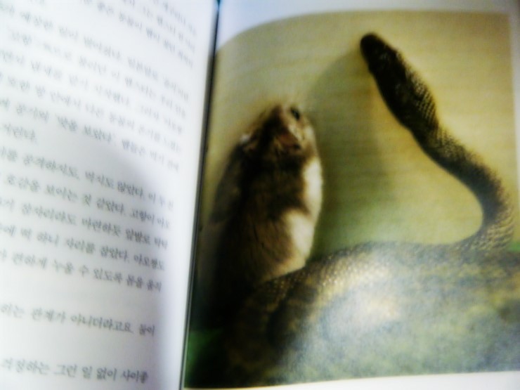 다들 말한다. 자연은 약육강식의 세계라고. 먹고 먹히는 먹이 사슬 속에서 인간과 달리 본능속에서 살아 가는 것을 동물이라 부르며 낮춰본다. 하지만. 세상이 다 그런게 아니라는걸 이들은 직접 보여 준다. 아 이건 늑대랑 개랑 입벌리고 있는게 귀여버서. ㅋㅋ 본내용중에 재미있던 것 중에 하나가 햄스터와 뱀의 이야기. 먹이로 먹으라고 넣어둔 햄스터를 먹지않는 뱀과 뱀을 무서워하지 않는 햄스터의 동거. 과학적인 추측들도 있지만. 왠지 아름다운 장면처럼 보이는건 아직 그렇게 세상이 삭막하지는 않은것같다는 생각든다.. ㅇㅅㅇ 암사자와 아기영양의 다정한 투샷. 게다가 품고있는 사연은 드라마틱 하기 까지.... 음.. 사진이 귀엽고 얘기도 흥미있는 책이라. 지하철에서 보면서 훈훈하게 읽은. 귀여운 동물 사진 같은거 좋아 하시는 분들이라면 더욱 귀욤귀욤 할만한 사진들도 한가득 있는.. ㅇㅅㅇ 아마 과학적인 추측을 갖다 붙이면 이런 보기 힘든 우정의 장조차 삭막하게 볼수 있을지도 모른다. 하지만. 꼭 과학이 옳은 것일까. 본능을 넘어선 우정, 그리고 사랑앞에서 이럴수도 있다고 믿고 살아 갈 수 있다면... .... 참... ㅇㅅㅇ ㅋㅋ 해당 서평은 출판사에서 제공받은 도서를 읽고 작성되었습니다