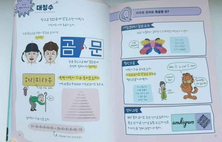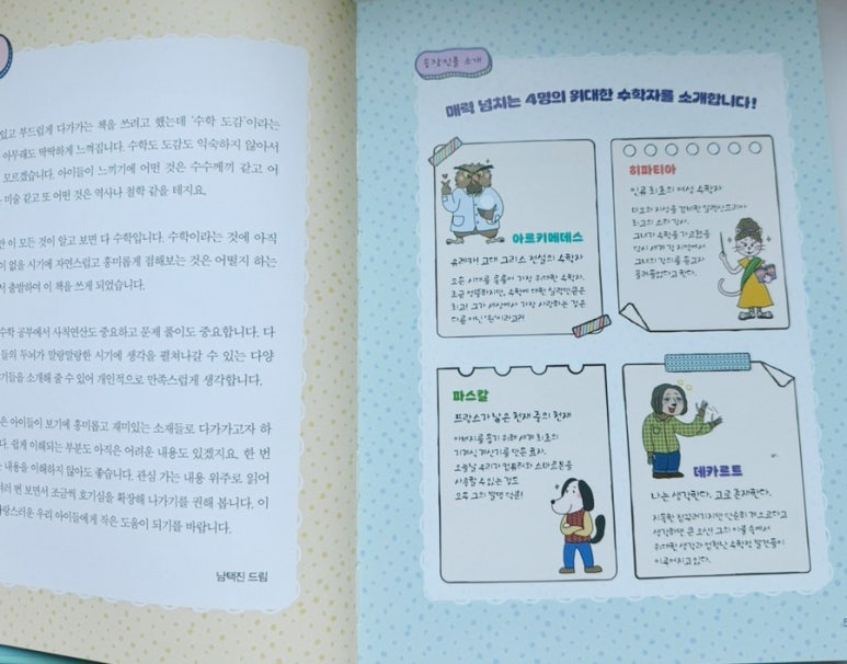 수학을 너무 딱딱하게 느끼지 않도록 새로운 내용이 시작될 때마다 재미있는 네 컷 만화를 넣었으며, 수학 개념을 잘 모르면 일어날 수 있는 상황을 만화 속에 유쾌하게 풀어서 아이들이 쉽게 수학 개념에 다가갈 수 있도록 해서 아이가 너무 좋아하더라고요