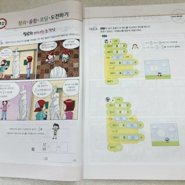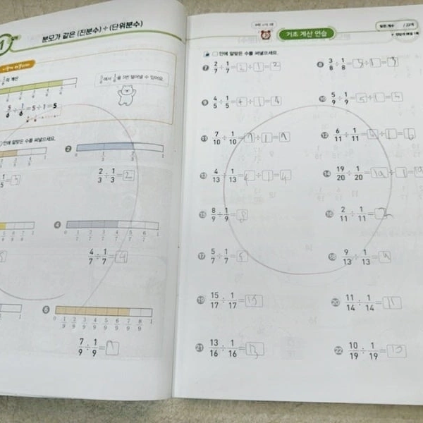 일단 학년 구분 없이 분수에 대해서 계통적으로 한 번에 나와서 아이들이 분절적으로 배우지 않고 유기적으로 배워서 정말 좋은데요