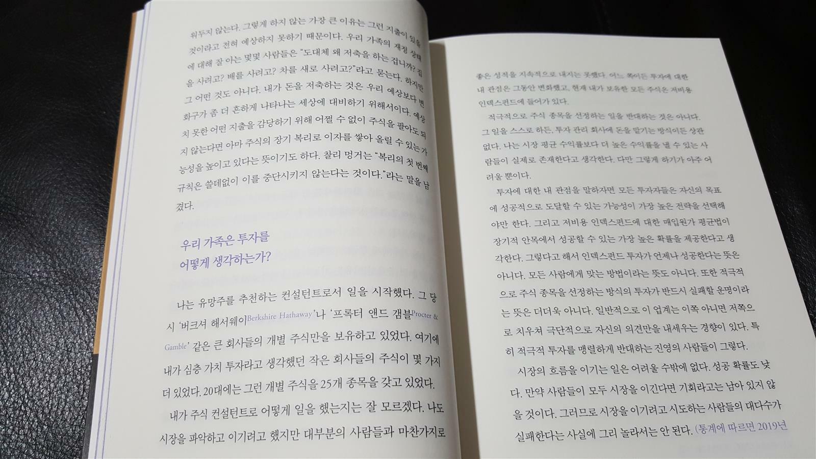 예전에 투자라 하면 어리석게도 단순히 저축만을 열심히 했던 것 같습니다. 물론 그 때는 그나마 지금과 같은 크고 긴 저금리 시대는 아니었기에 어느 정도 수익을 벌 수는 있었지만 지금과 같은 크고 긴 저금리 시대에는 더 이상 저축이라는 것은 투자가 아니라 오히려 인플레이션도 방어하지 못하는 수단이 되어 버렸습니다. 그래서 이제는 다양한 포트폴리오 구성이 필요하고 투자를 어떻게 해야 하는지 배우고 미래 100세 시대를 대비하려면 무엇을 준비하고 계획해야 하는지 알고 싶어 이 책에 큰 관심을 가졌고 성공적인 투자를 위해 이 책을 탐독하게 되었습니다. 이 책은 25명의 투자 전문가들이 나와 본인이 직접 투자하고 관리하고 있는 투자 방법과 포트폴리오를 알려주어 우리에게 투자에 대한 많은 가르침과 깨달음을 주고 투자 전문가들의 돈에 대한 생각과 마인드에 대해서도 알려주어 우리가 돈에 대해 어떻게 생각하고 어떤 자세를 갖추어야 하는지 많은 생각을 하게 합니다. 당연히 최고의 전문 투자자들이기에 주식, 부동산, 채권 등 여러 분야에 투자하고 다양한 포트폴리오를 구성할거라 생각했는데 의외로 본인에게만 맞는 투자 방법을 세우면서 주식직접투자와 같은 위험리스크가 큰 투자를 하지 않는 것을 보면서 본인의 성향에 맞는 올바른 투자 방법을 찾을 수 있게 도와줍니다. 생각하지도 못하고 있는지도 모르는 중요한 포트폴리오를 구성할 수 있다는 것을 배웠고 투자 전문가들만의 특징적인 투자 방법을 알 수 있어서 우리가 포트폴리오를 어떻게 구성할 수 있는지 많은 팁과 노하우를 배울 수 있었습니다. 저에게 잘 맞는 투자 방법을 찾을 수 있었고 어떻게 투자 포트폴리오를 구성할 수 있을지 많은 영감을 주어 너무도 뜻깊은 시간 되었고 투자에는 어떤 것이 있고 어떻게 투자해야 하는지 너무 많은 것을 깨닫는 계기가 되었습니다. ※ 출판사로부터 도서를 제공받아 작성한 리뷰입니다