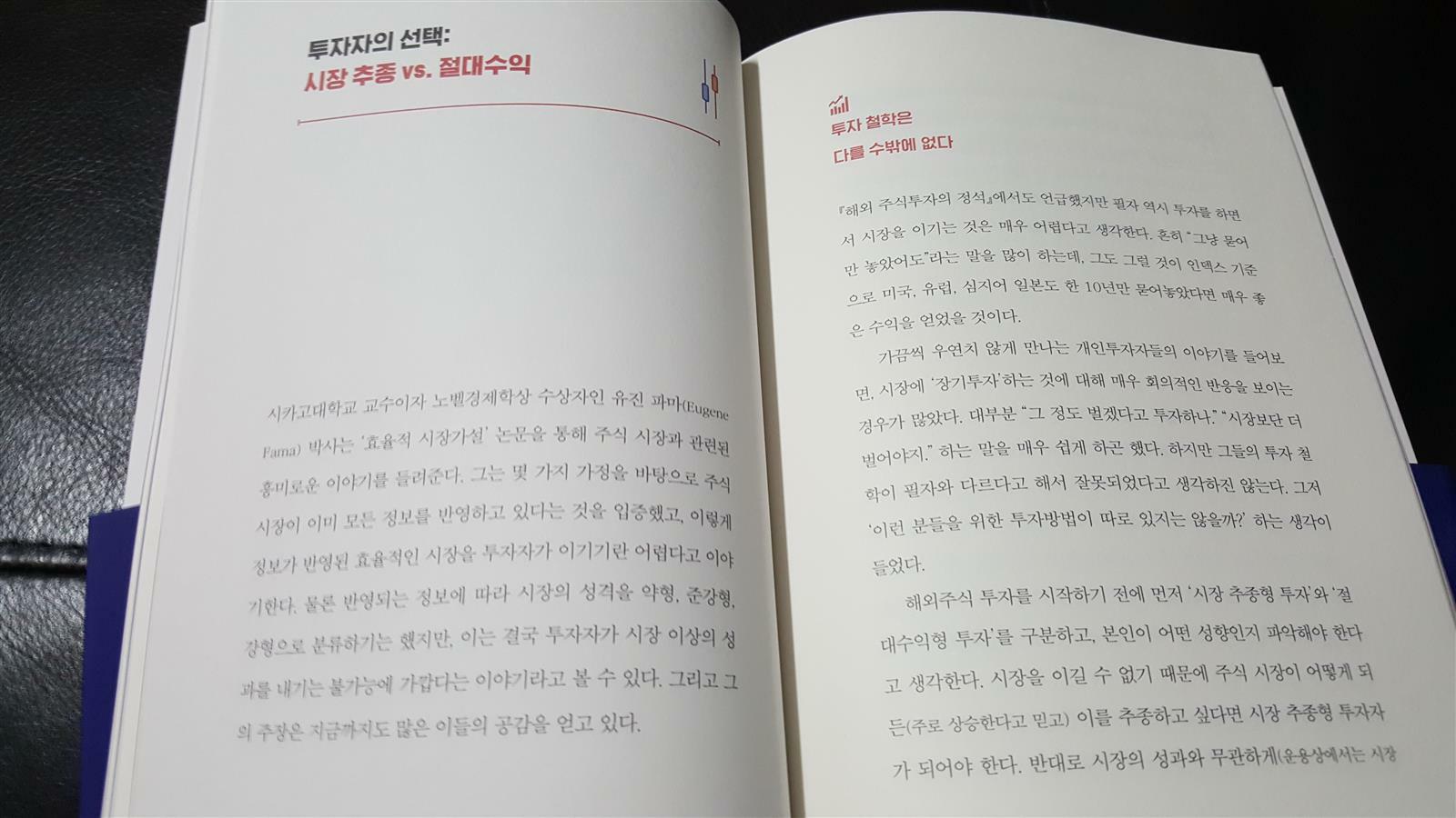 주식에 대해 공부하면서 깨달은 것이 해외 특히 미국주식에 투자해야 된다는 것을 알고 나서 해외주식 투자를 하고 싶으나 제가 아직 국내 주식도 해 보지 않았고 아직 많이 부족한상황이어서 해외 주식을 어떻게 잃지 않고 투자할 수 있을까 고민하면서 많은 공부를 하고 있는 중에 해외주식 투자에 대한 로드맵을 제시해 주고 해외 투자방법과 노하우를 알려주고 주식에 대한 혜안과 안목까지 넓혀 줄 이 책 너무 기대되어 탐독하게 되었습니다. 이 책 서두에는 왜 주식투자를 해야 하는지 저자가 분석한 통계와 이론을 통해 자세하고 논리적으로 설명해 주어 주식에 답이 있다는 것을 깨닫고 해외주식 투자의 가장 중요한 포인트가 연준의 스탠스인데 연준이 어떻게 움직이느냐에 따라 어떻게 주식시장이 변화하는지 많은 정보와 가르침을 주어 제게 큰 도움이 되었습니다. 또한 주식투자에 대한 자기만의 원칙과 투자 방법을 선택하고 세워야 하는데 크게 시장추종과 절대수익이라는 두가지 투자 방법에 대해 본인에게 맞는 방법을 선택할 수 있게 도와주고 한 쪽을 선택하게 되면 그에 맞는 투자를 어떻게 해야 하는지 저자의 실전 투자 노하우를 구체적으로 자세하게 알려주어 많이 통찰할 수 있게 도와줍니다. 세계 경제의 흐름, 달러 등에 대한 시장을 통찰할 수 있게 도와주며 왜 달러이고 미국이 중요한지에 대해 미래 주식시장을 예측하고 유동성으로 인한 인플레이션 우려가 있지만 그렇게 당연한 경제 법칙도 깨지는 상황이 연출되는 최근에 추이에 대해 분석적으로 알려줍니다. 자산배분의 비율, 환율 등 여러가지에 대한 넓은 시야를 제공하고 블루오션을 어떻게 통찰할 수 있을지 안목을 넓혀주어 해외주식 투자 뿐만 아니라 주식 전반에 대해 많은 것을 배우는 계기가 되었습니다. 해외투자 ETF의 포트폴리오 운용 전략을 소개해 주는데 쉽지 않는 방법이지만 더욱 공부하고 노력하여 제 방법으로 만들고 싶다는 마음을 가졌고 해외주식 투자에 대한 많은 깨달음과 방법을 알 수 있는 뜻깊은 시간 되었습니다.