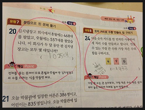 유형별 문제로 아이가 어느 부분 개념을 놓치고 잇는지 어느 부분에 대한 재 복습이 필요한지